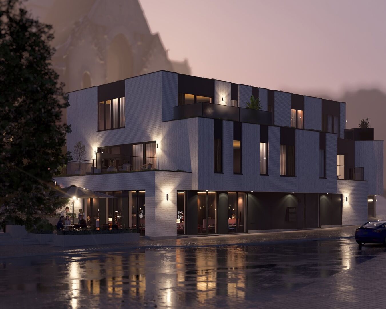 In the heart of Huldenberg, right on the Gemeenteplein, lies this exceptional commercial ground floor of approx. 205 m² featuring a wide shopfront and a large sunny terrace of 42 m².