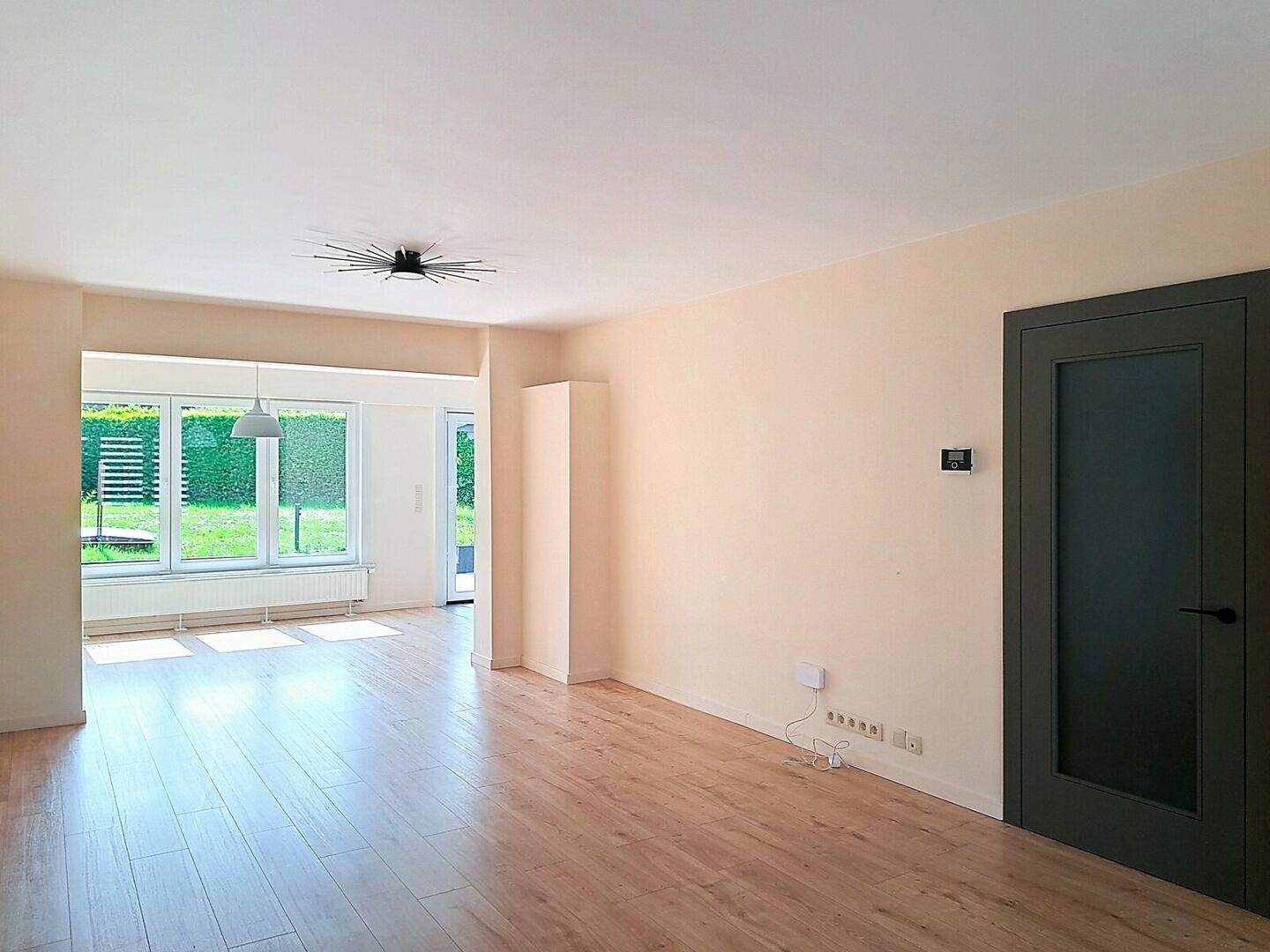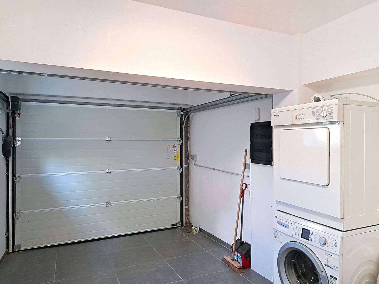 Entrance hall with toilet 8m² - living room 28m² (laminate) - dining room 16,8m² (laminate) - kitchen with breakfast corner, refrigerator, freezer, dishwasher, microwave, oven and induction cooker - laundry room in the garage with washer and dryer - 3 bedrooms (laminate) 15,2m² / 10,8m² / 8, 06m² - shower room 1m² with shower cubicle, toilet and washbasin in furniture - 1 toilet - garage 27,2m² for 1 car with electric gate - 1 parking space outside - attic 25m² - pantry cellar 9m² - chauffage cellar 4m² - enclosed garden with garden house (southeast) - terrace 32m² (southeast).