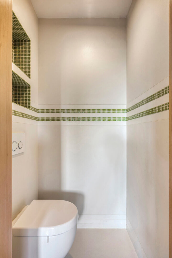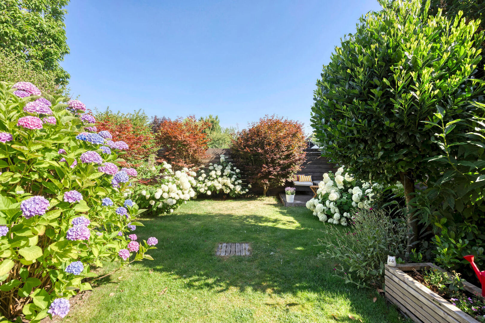 Access to terrace (19.8 m², north-facing) and landscaped garden with flowerbeds and an additional evening terrace (4 m²) at the back