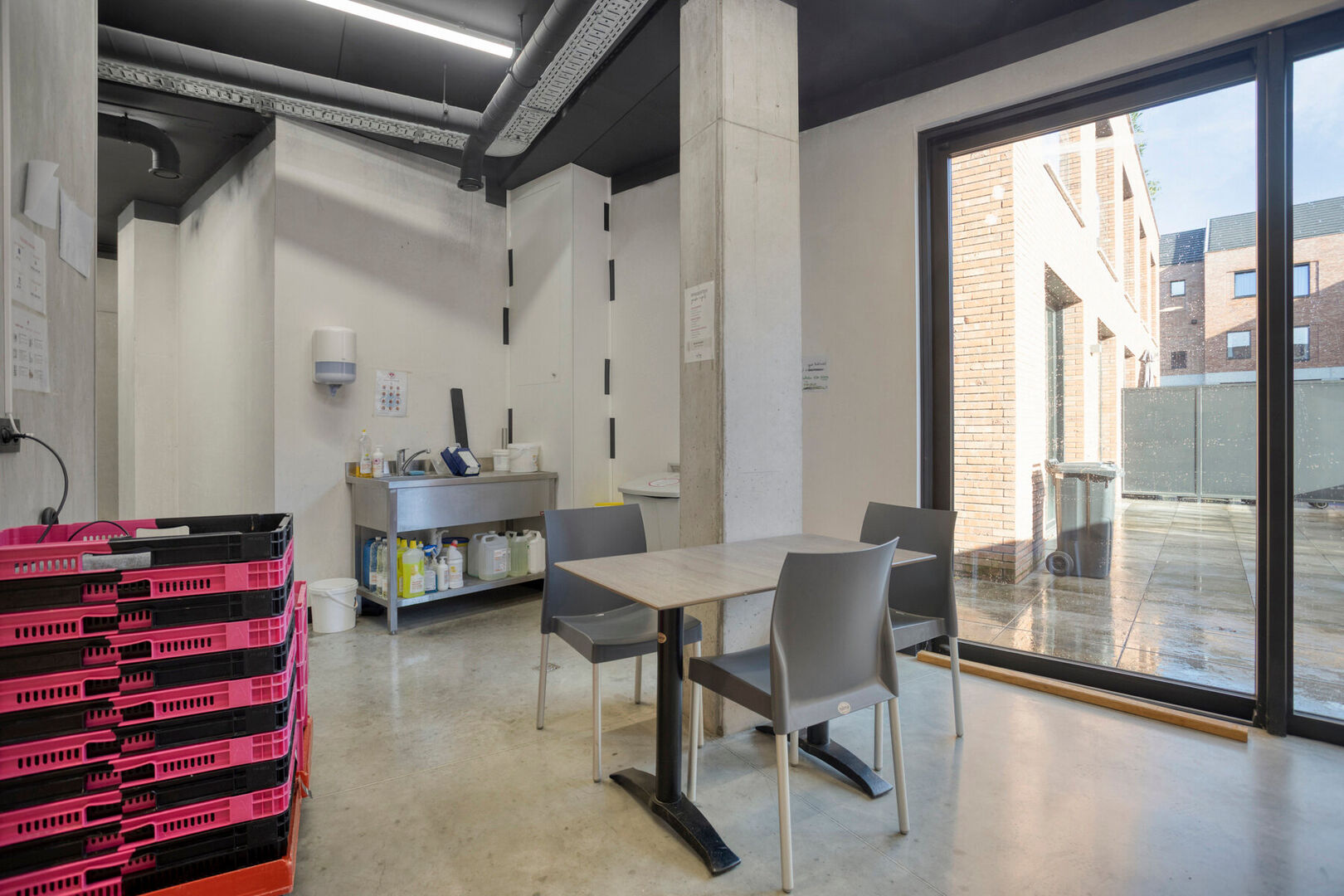 The generous commercial area of 186 m² is offered fully finished. Large window fronts guarantee maximum natural light and significantly enhance street-facing visibility. At the rear, the commercial space benefits from a private terrace of 24 m², offering interesting opportunities for horeca, care-related businesses or any activity for which outdoor space is a real added value. At the front of the building, six private parking spaces ensure outstanding accessibility for clients and visitors. In the basement level, an additional parking space, a garage with storage and a separate cellar storage unit are included, substantially increasing the logistical efficiency of the property.