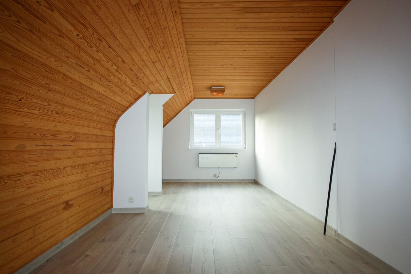 Entrance hall with toilet (tiled) - Livingroom with open fire 80m² (tiled) - installed kitchen with breakfast corner 14m² (tiled): fridge with freezer, dishwasher, microwave, oven, induction cooking stove - Bureau 12m² (tiled) - Laundry room 10m² (tiled) - Garage for 2 cars 27m² - 2 parking lots outside - Beautiful garden with summerhouse (or: northwest) - Terrace 30m² (or: northwest) - Covered terrace 12m² (or: northwest).
