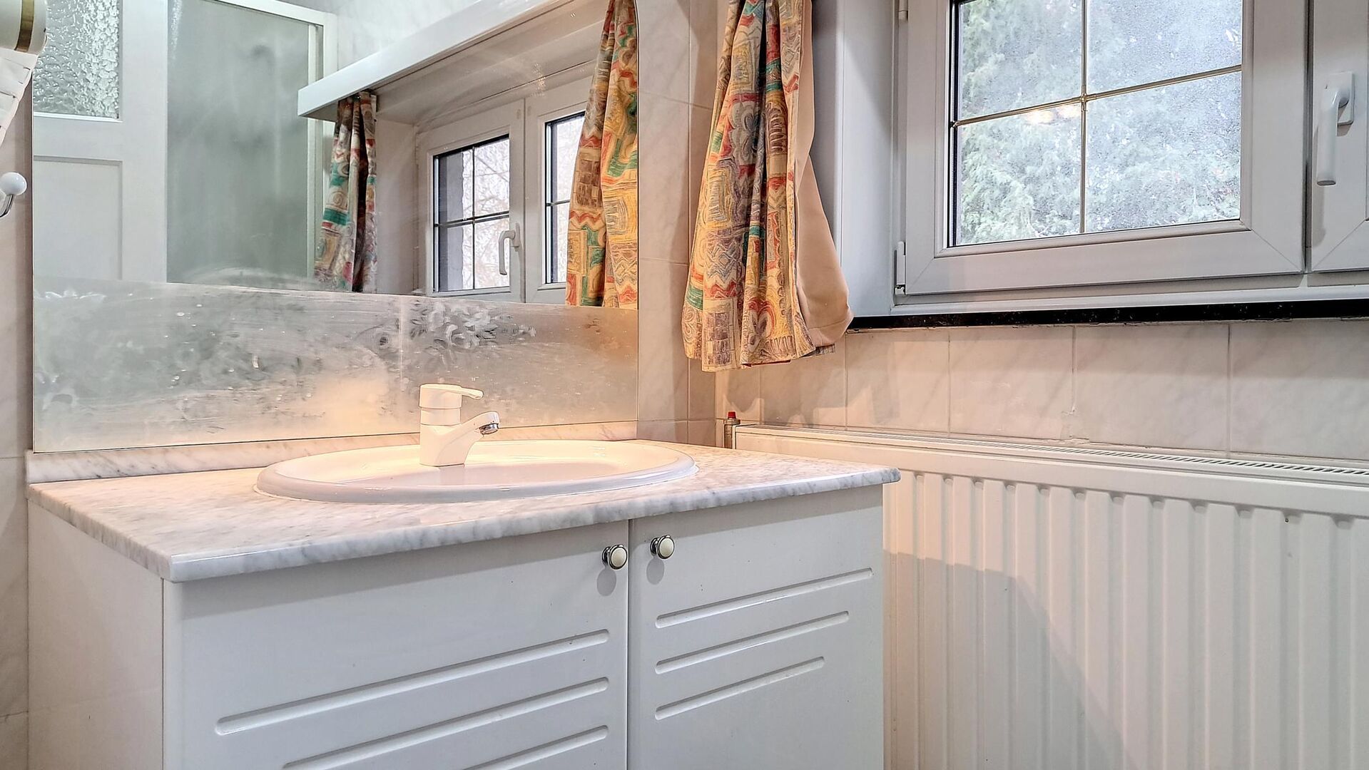 Living room 29,8m² (tiles) - dining room 7,1m² (tiles) - porch 11,7 (tiles) - closed, installed kitchen with electric cooking device 7,5m² (tiles) - 3 bedrooms (parquet) 8,7m²/12,2m²/4,7m²(dressing) - 2 shower rooms with shower cabin en sink in furniture (one of which with toilet) - garage for 2 cars, door remotely controlled 33,9m² - 7 parking spaces outside - basement 10m² (provision) - terrace, or.: W 16m² - garden with pavilion and fenced, or.: W.