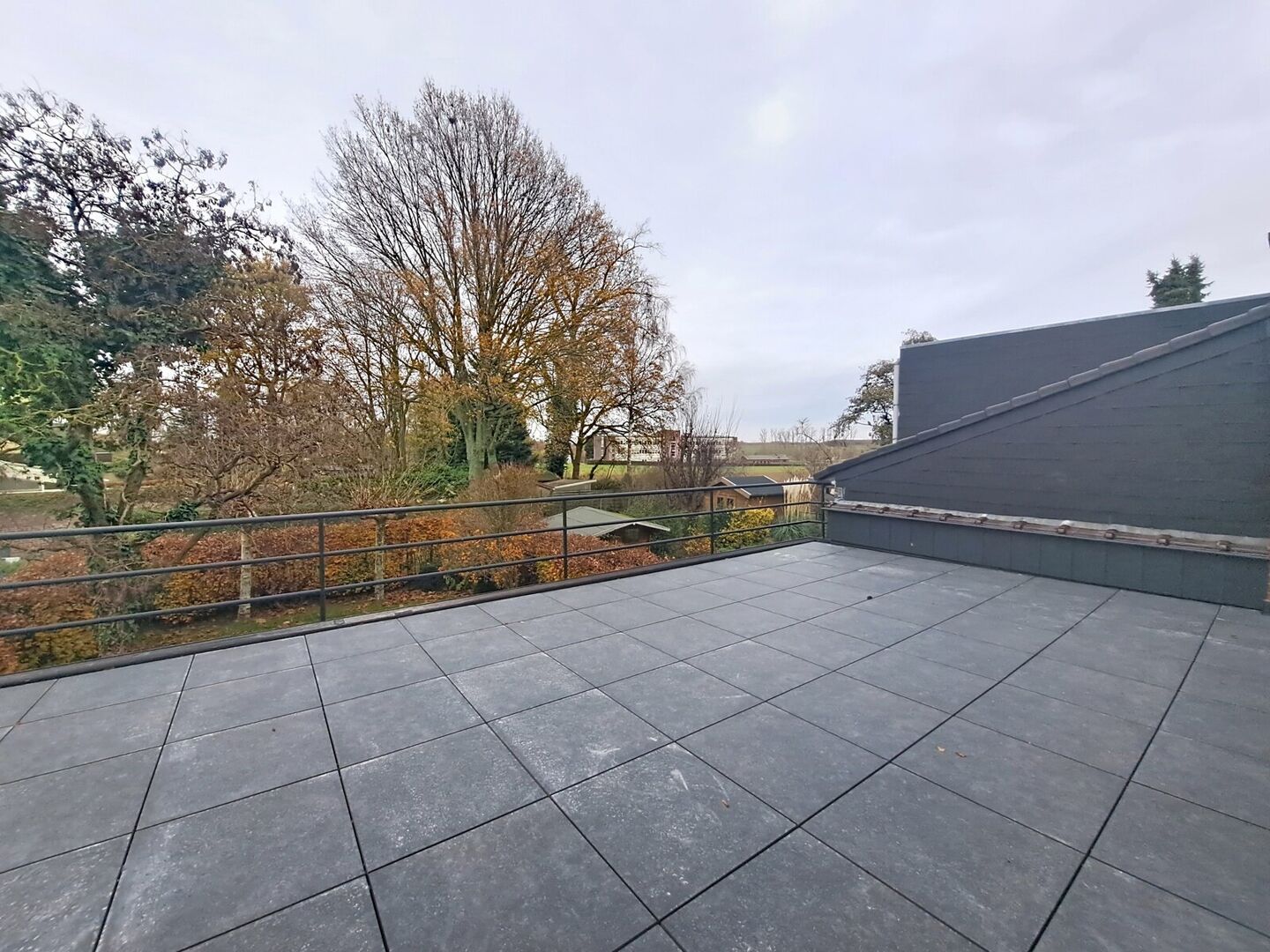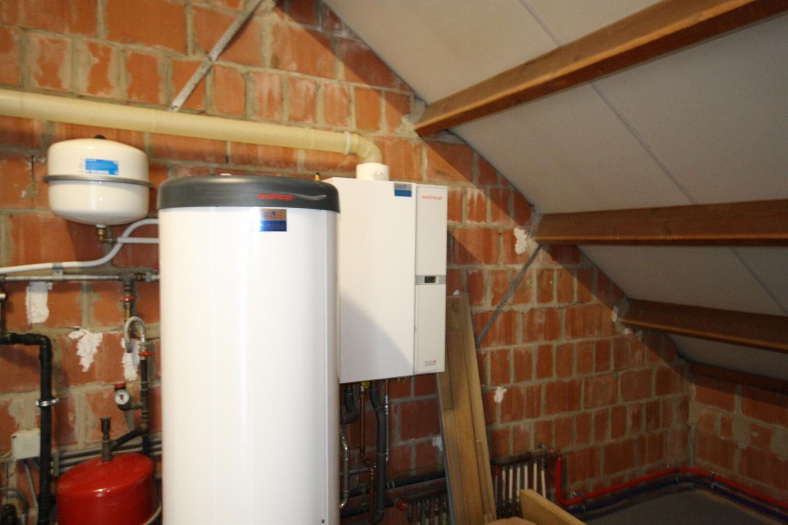 Entrance hall with toilet and vestiaire (tiled floor) - Living room with fireplace (parquet) - Fully equipped kitchen with breakfast corner (tiled floor) - Storage room - Laundry room - 6 Bedrooms (3x laminate, 3x parquet, 4x with built-in closets) - Bathroom with bath, shower cabin and vanity with 1 sink - Shower room - Garage for 2 cars - 2 Parking spaces - Attic- Covered terrace (or NW) - Balcony (or NW) - Fenced garden (or NW).