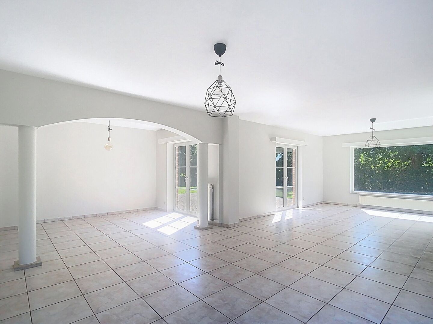 Entrance hall with toilet and vestiaire - living room 46,3m² (tiled floor) with fireplace - dining room 13,7m² (tiled floor) - fully equipped kitchen with breakfast corner 20m² (tiled floor): fridge, dishwasher, microwave, oven, ceramic stove - study 20m² - 5 bedrooms (laminate, 2x with built-in closets): 2x 16m² / 10,4m² / 20,5m² / 9m² - dressing 5m² - bathroom with bath, shower cabin and vanity with 1 sink - bathroom with bath, shower cabin, toilet and vanity with 2 sinks (ensuite bedroom 4) - shower room with shower cabin and vanity with 1 sink - store room 6,76m² - laundry room 5m² (in the garage) - garage for 2 cars, with remote control - attic - cellar: provision cellar 63m² / laundry room 12m² - garden (fenced, or south) with terrasse 49m² and 17m².
