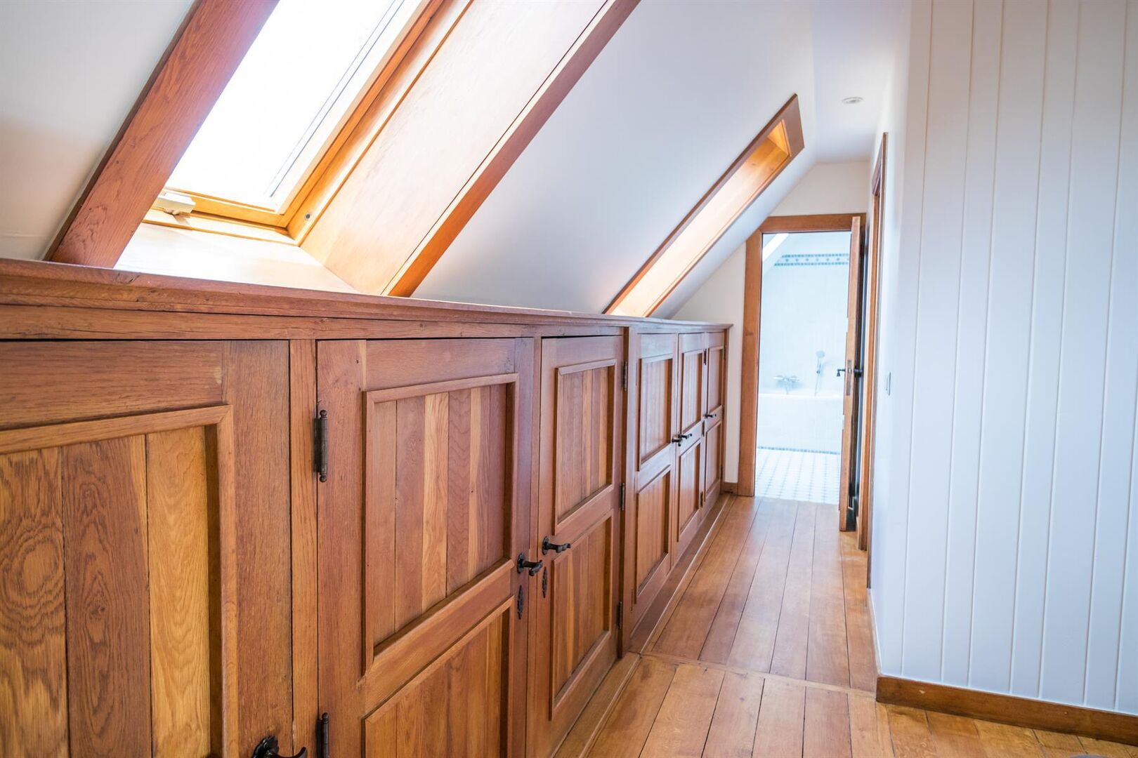 Thanks to location you're also close-by the stores, the parc and the center of Tervuren aswell as the new golf of Strerrebeek "The National". This house has been recently renovated with the use of oak and blue stone and is layed on a beautiful plot of 11 acres with a southren orientation with a large terrace.