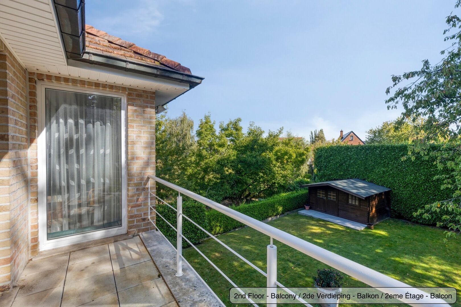 Access to the terrace and east-facing garden with garden shed