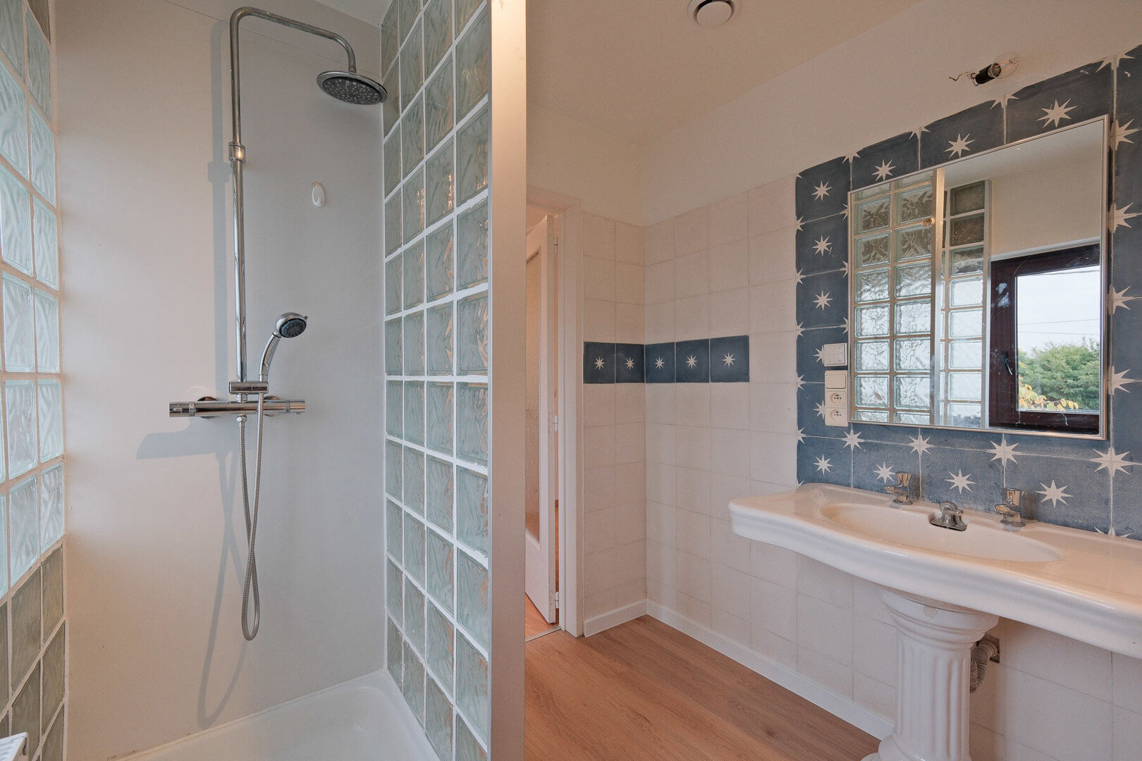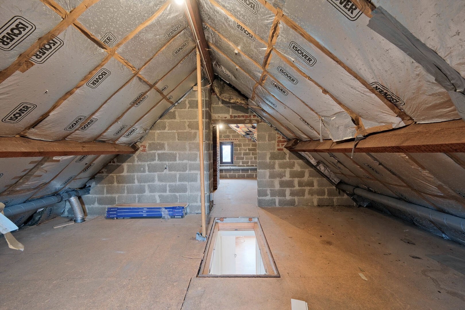 The attic provides additional storage space or further conversion potential. The beautiful garden with open views over the fields at the back creates a serene outdoor setting. The house also includes cellars, a garage for one car and parking for four vehicles.