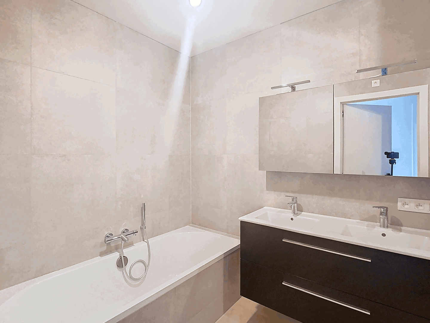 - Salle de bains : 6,3 m² avec baignoire, douche à l’italienne et double lavabo