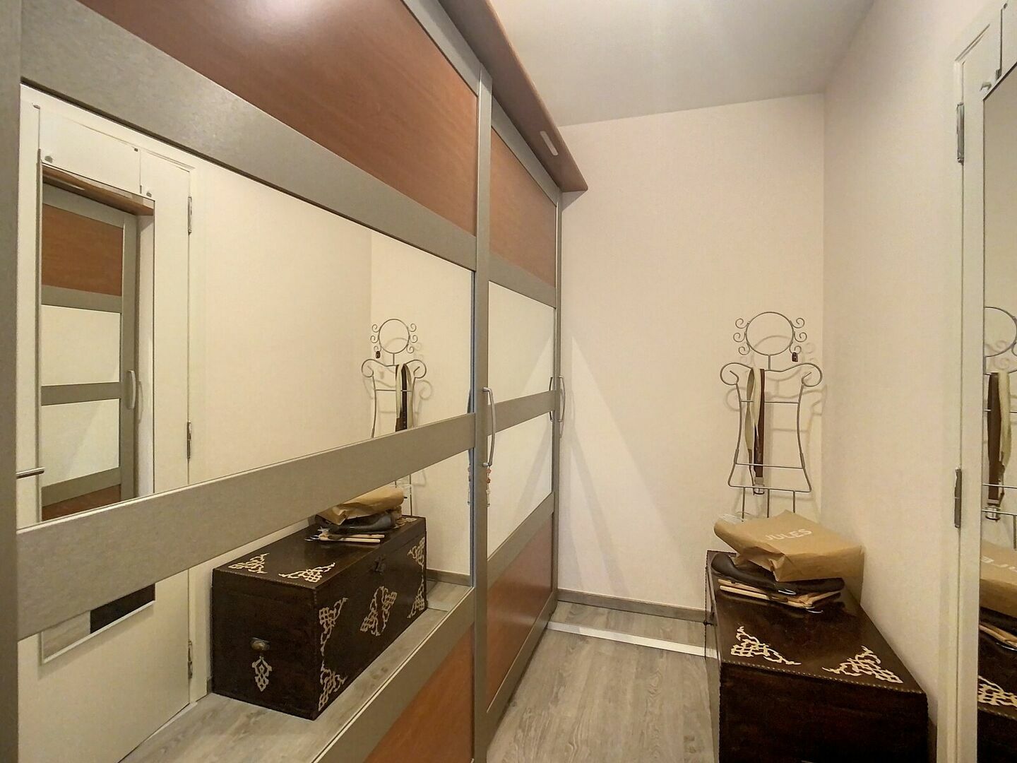 En entrant dans la maison, vous accédez à un hall d’entrée de 9 m². Celui-ci mène à un séjour lumineux de 41 m² avec sol carrelé, offrant suffisamment d’espace pour un coin salon convivial et une salle à manger.