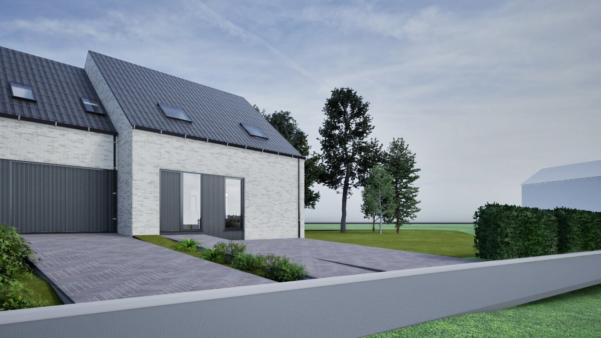 L’architecte a imaginé une habitation contemporaine et fonctionnelle : un espace de vie lumineux avec cuisine ouverte au rez-de-chaussée, en lien direct avec le jardin grâce aux grandes baies vitrées. À l’étage se trouvent trois chambres spacieuses, une salle de bain élégante ainsi qu’un bureau supplémentaire, parfait pour le télétravail ou les loisirs.