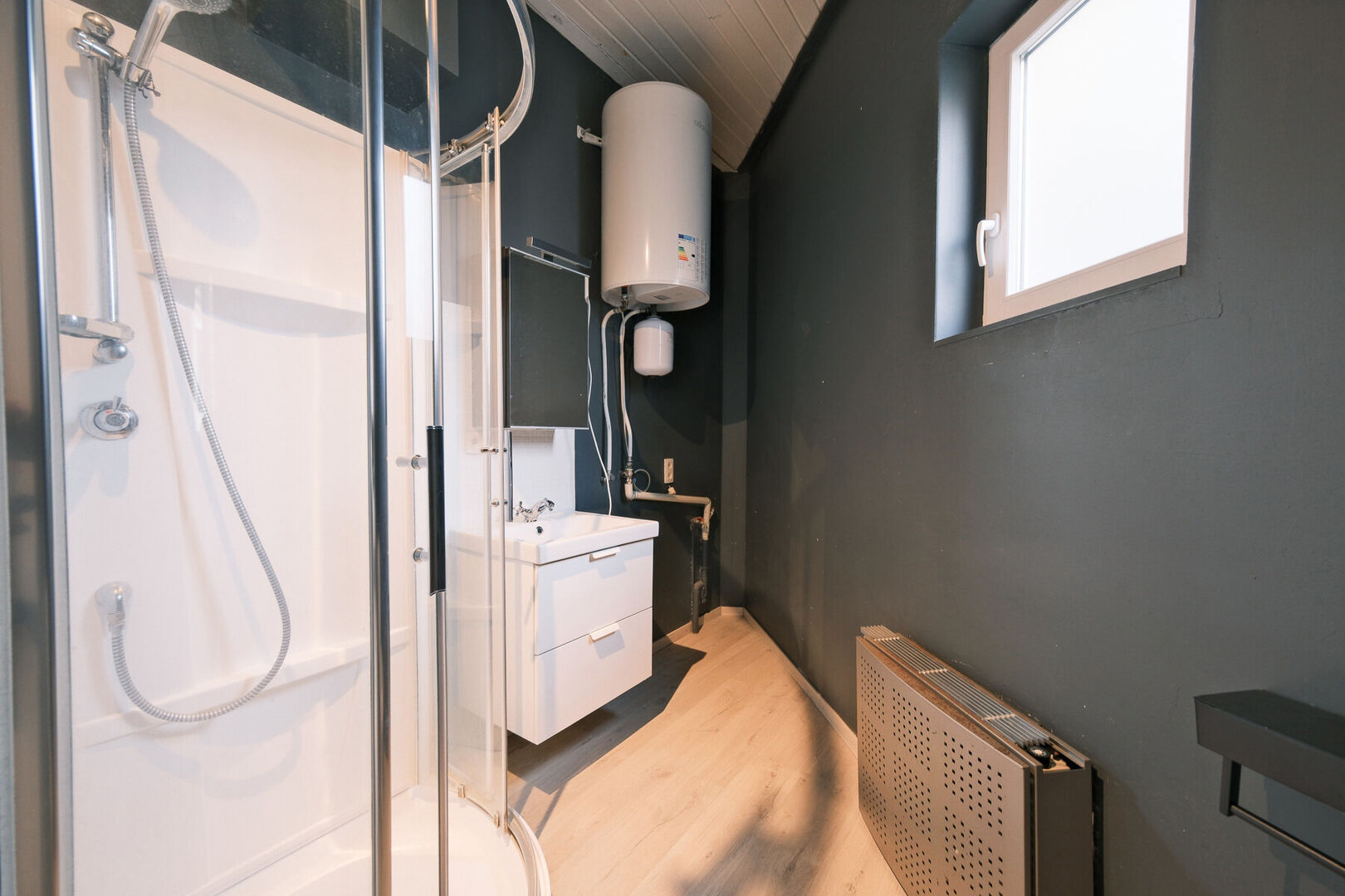 Grenier (escalier fixe) : espace ± 16,2 m² avec rangements intégrés (idéal comme chambre supplémentaire/bureau/espace hobby).