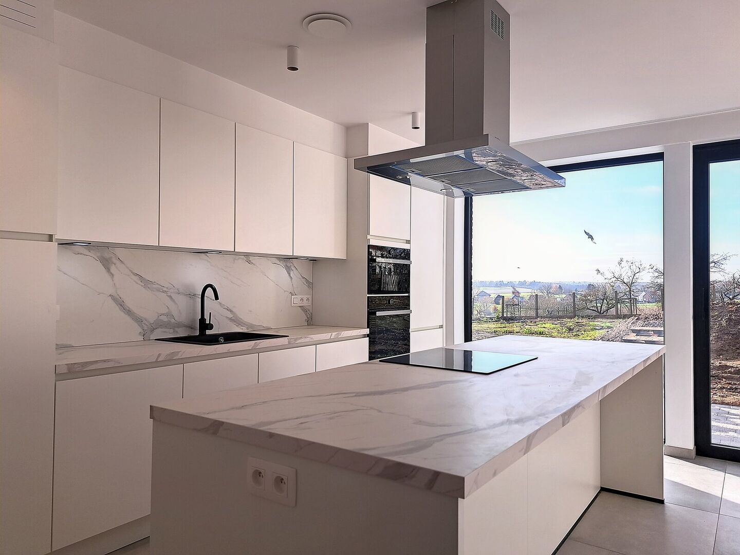 Hall d'entrée avec toilette 6,2m² (sol carrelé) - séjour 36,2m² (sol carrelé) - cuisine ouverte 12,5m² avec coin petit déjeuner (sol carrelé) équipée de : réfrigérateur, lave-vaisselle, micro-ondes, four et plaque vitrocéramique - débarras 8,9m² (sol carrelé) - 4 chambres à coucher : 10,7m² / 13,1m² / 10,2m² / 9,3m² - salle de bain 5,4m² avec cabine de douche et 1 lavabo dans le meuble - salle de bain 6,4m² avec baignoire, toilette et 2 lavabos dans le meuble - garage pour 1 voiture - jardin (Or. Sud) - terrasse (OR. Sud) - à l'extérieur encore 2 places de parking.