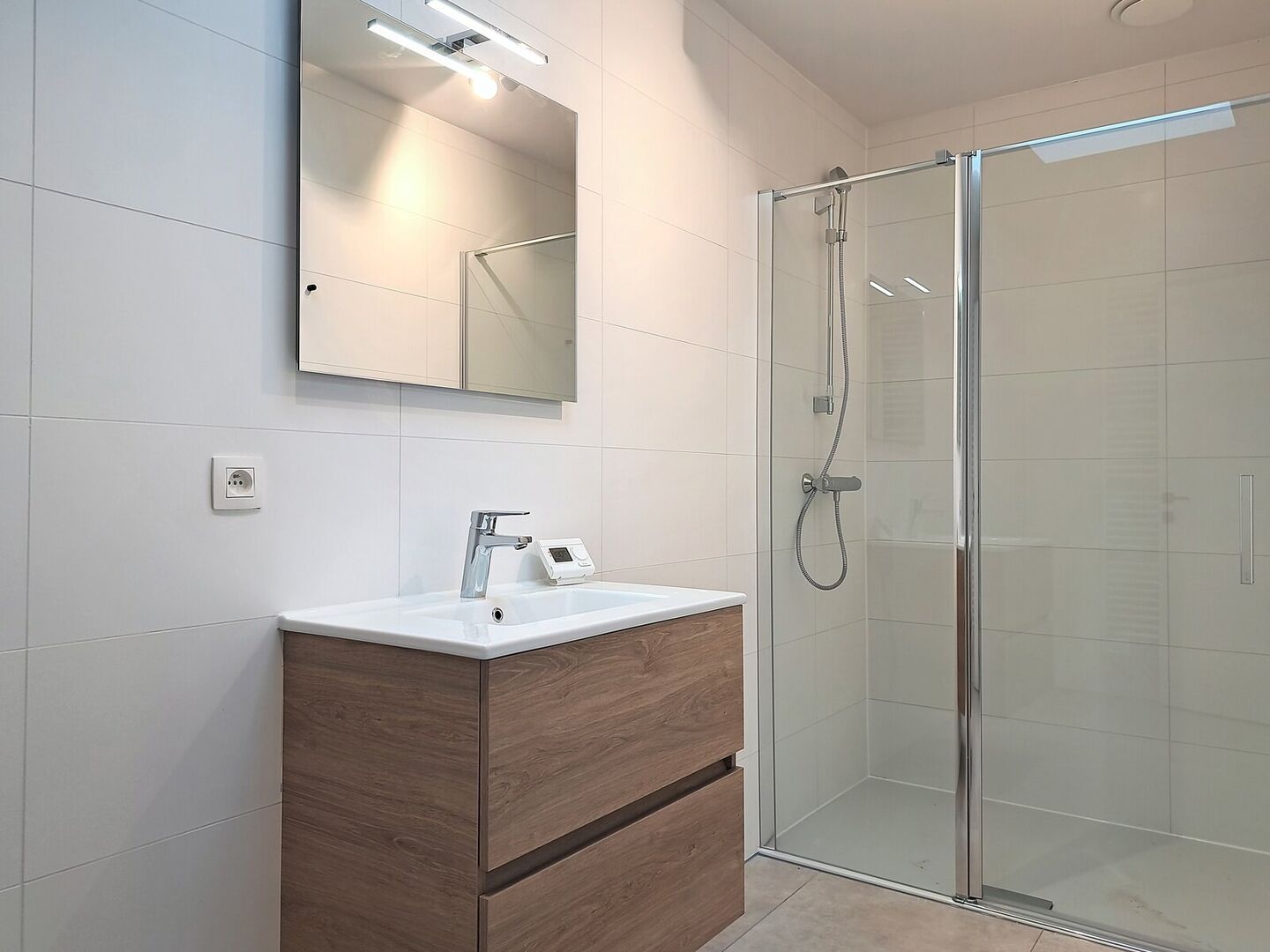 avec cabine de douche et 1 lavabo dans le meuble
