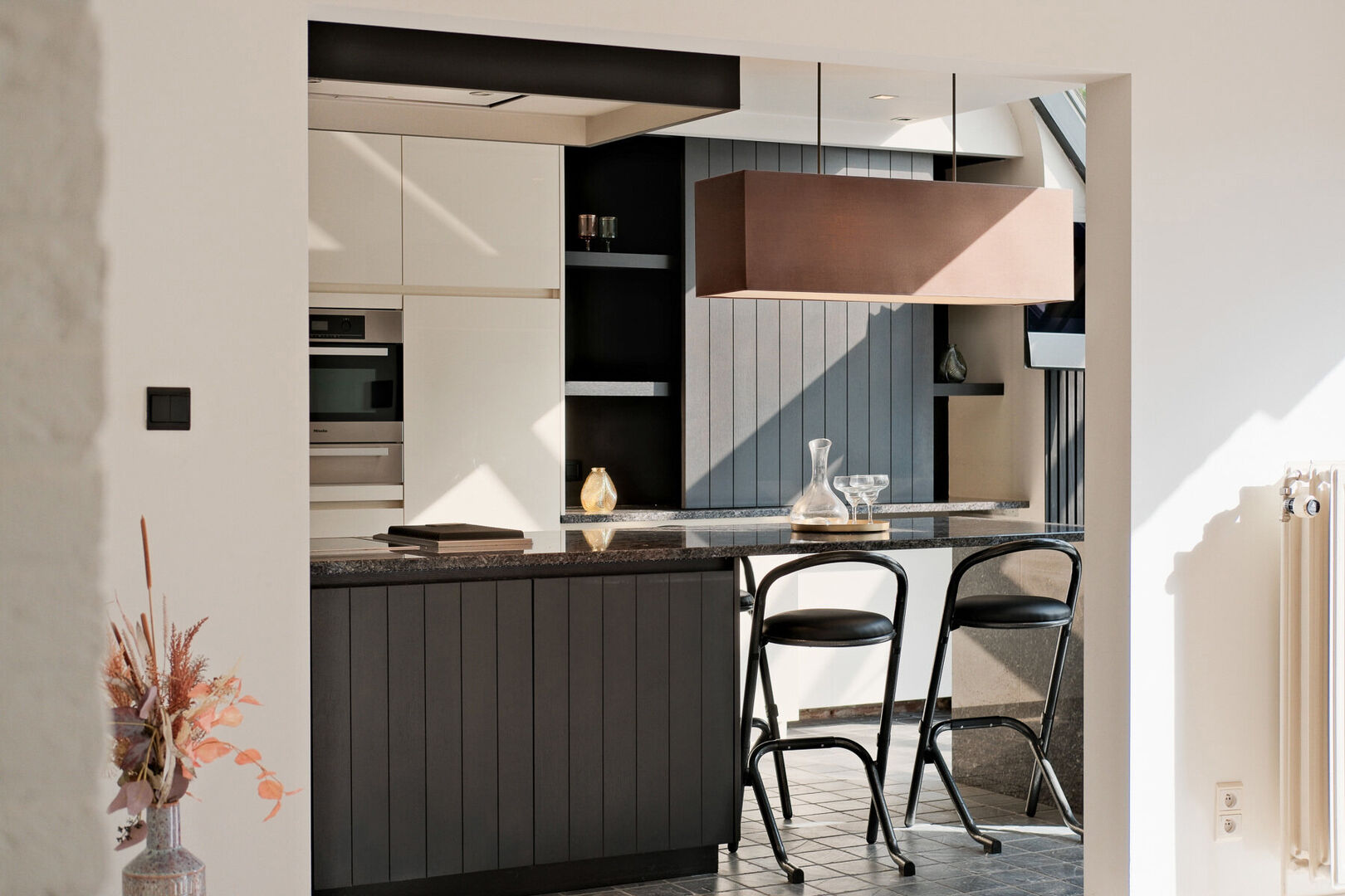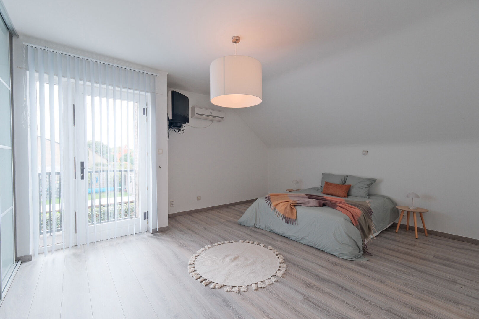 La maison combine des matériaux chaleureux et une construction de qualité avec un confort de vie exceptionnel. Le séjour impressionne immédiatement par sa hauteur sous plafond jusqu’au faîte et sa mezzanine ouverte vers le hall de nuit. Grâce aux grandes baies vitrées et portes coulissantes, la maison bénéficie d’une luminosité naturelle abondante et d’une sensation d’espace remarquable. À l’arrière, la connexion avec la véranda, la terrasse et la piscine permet une parfaite harmonie entre intérieur et extérieur.