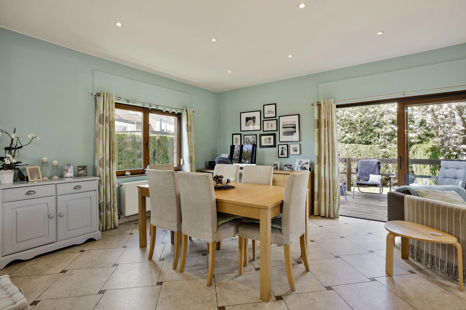 L’habitation comporte : un hall d’entrée avec toilette de 7,5 m² – une salle de séjour de 21 m² avec feu ouvert – une salle à manger 28 m² – une cuisine complètement équipée de 18,4 m² avec réfrigérateur à compartiment congélation , lave-vaisselle, four à micro-ondes, four, réchaud vitro-céramique – 5 chambres à coucher ( dont 3 chambres avec laminé et armoires encastrées, deux avec tapis) de respectivement 16 m² / 11,7 m² / 14,5 m² /12,4 m² et 14,7 m² – une salle de bain de 5,8 m² avec bain / douche, un lavabo dans un meuble et une toilette – une salle d’eaux de 5,1 m² avec cabine de douche et une toilette – un garage pour une voiture de 20,2 m² – une cave de 45 m² avec buanderie – 2 emplacements de parking extérieurs – un jardin privatif (orienté au nord-ouest) et une terrasse de 12 m² (orientée au nord-ouest) .