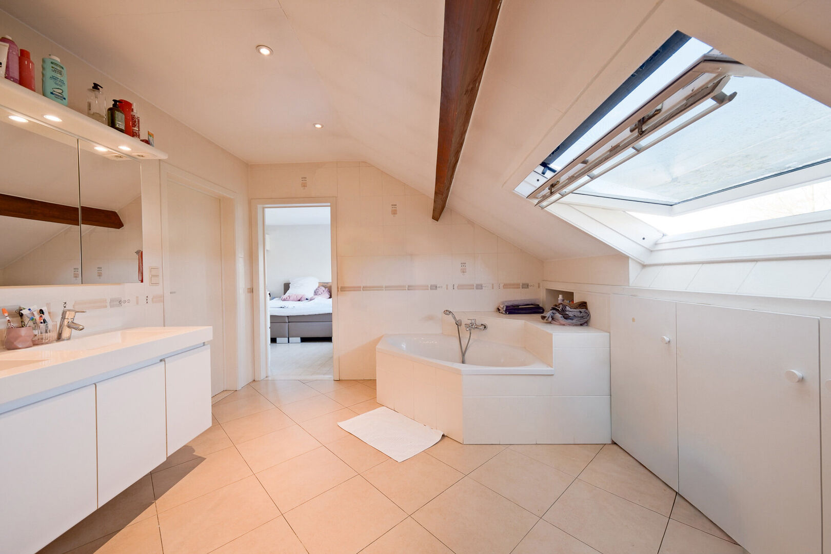 La cuisine équipée (±21,5 m²) est un véritable atout : pratique, spacieuse et conviviale.