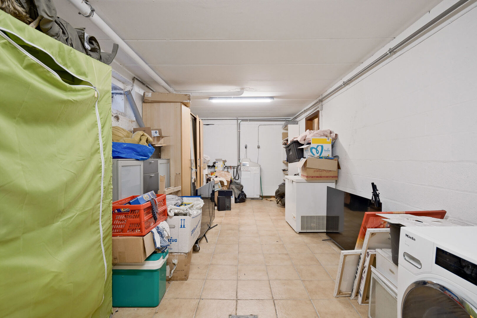 Grande cave/buanderie (±41,1 m²) avec techniques et vaste espace de rangement — idéale pour stockage, hobby ou organisation.