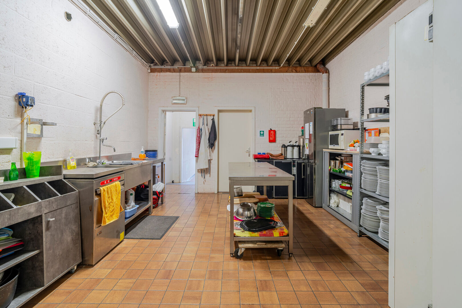 - Ruime inkomhal met een grote bar, eetgelegenheid en volledig uitgeruste industriële keuken met aparte toegang (ideaal voor catering of leveringen)