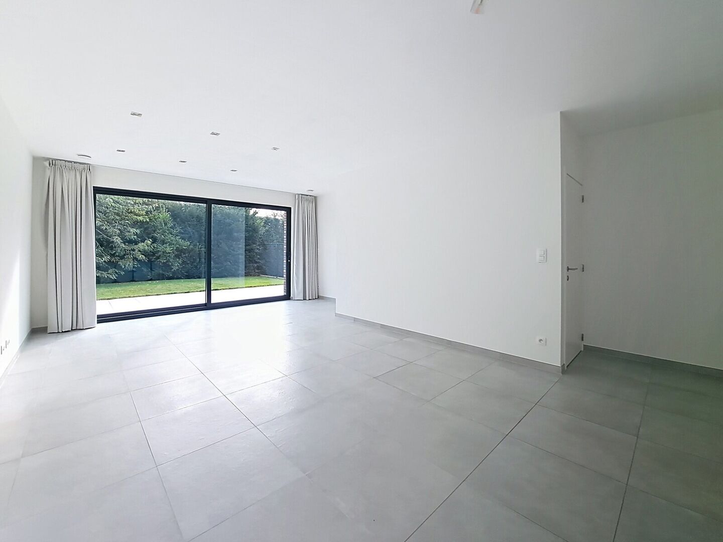 Bij het binnenkomen treft u een lichte inkomhal met gastentoilet. Vervolgens betreedt u de ruime leefruimte van ca. 45 m², waar een gezellige zithoek, eetruimte en een volledig uitgeruste open keuken met ontbijthoek samenkomen. De keuken is voorzien van alle hedendaagse comfort: koelkast met vriesvak, diepvries, micro-oven, vaatwasmachine en een keramisch kookvuur. Via een groot schuifraam geniet u van een vlotte toegang tot de zonnige tuin. Extra handig is de berging van 5 m² op het gelijkvloers.