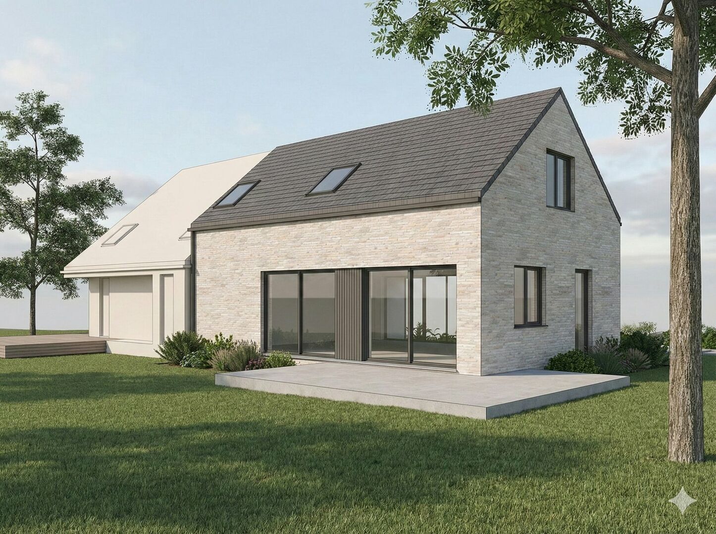 VASTE TOTAALPRIJS: volledig afgewerkte woning voor 530.000 EUR, exclusief aankoopkosten, architectkosten en buitenaanleg. Energiezuinige bouw met ventilatiesysteem, zonnepanelen en moderne technieken.