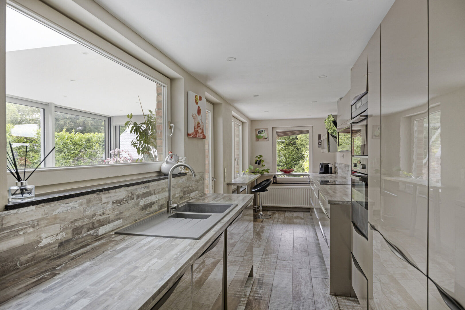 De hoofdwoning beschikt over een lichtrijke leefruimte met directe toegang tot het terras, een moderne keuken, vier volwaardige slaapkamers en drie stijlvolle badkamers. De woning is grondig gerenoveerd met o.a. drievoudige beglazing, conforme elektrische installatie en volledige asbestvrijheid. Geen renovatieplicht – deze woning is instapklaar.