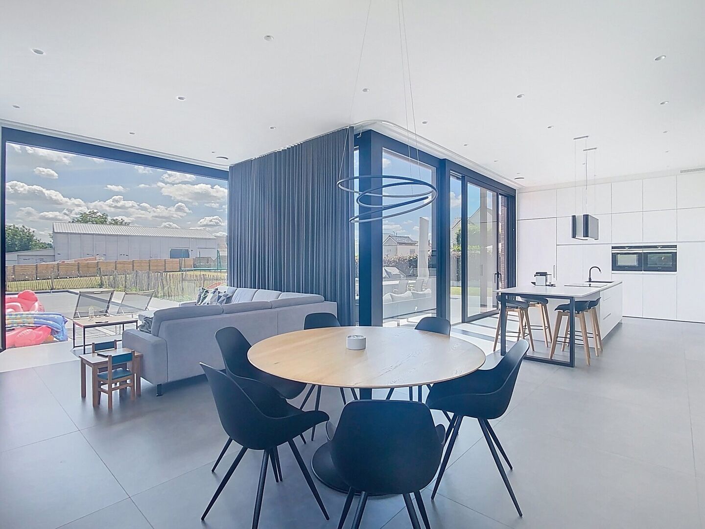 Dankzij de grote raampartijen valt het daglicht overvloedig binnen, waardoor elke kamer een aangename en open sfeer uitstraalt. De woning is praktisch ingedeeld en afgewerkt met oog voor detail en kwaliteit.
