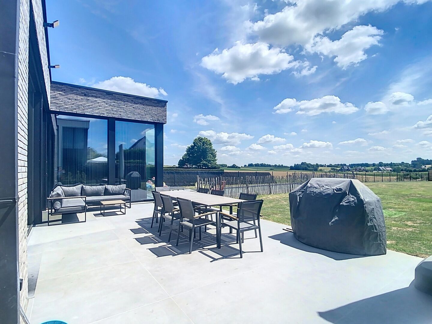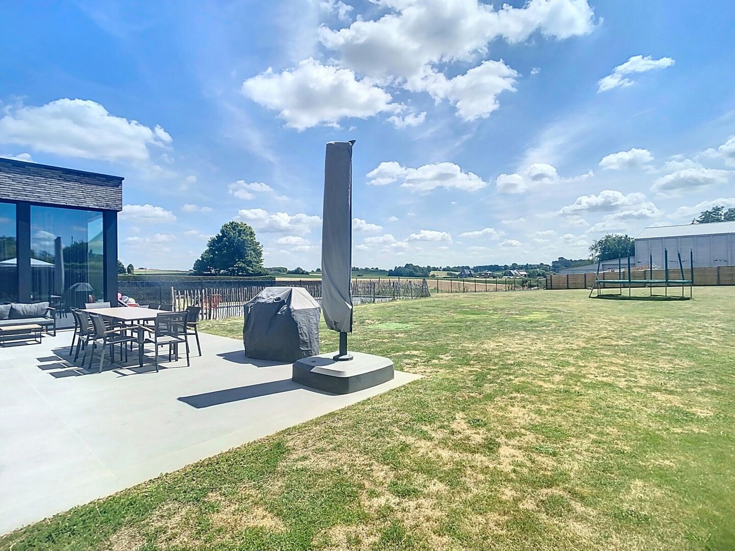 De volledig aangelegde tuin is zuidgericht en voorzien van een prachtig zwembad met uitzicht op de omliggende velden – ideaal voor wie houdt van rust en ruimte.