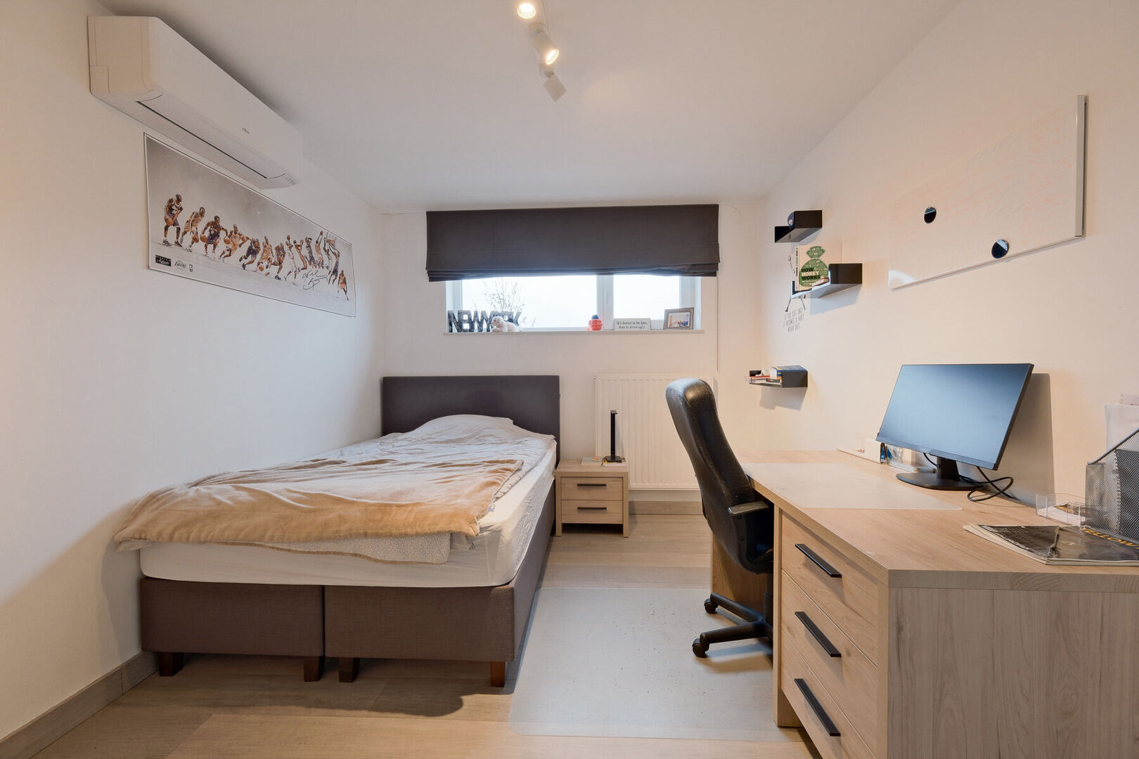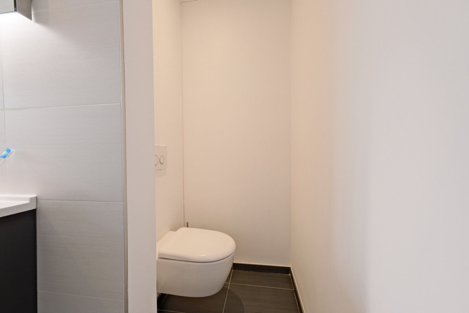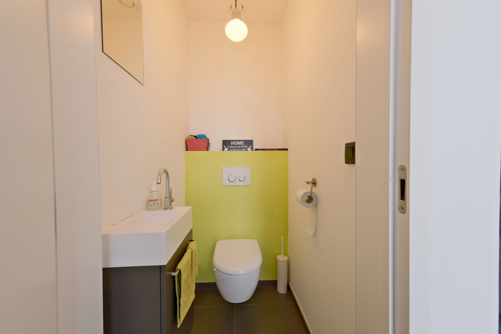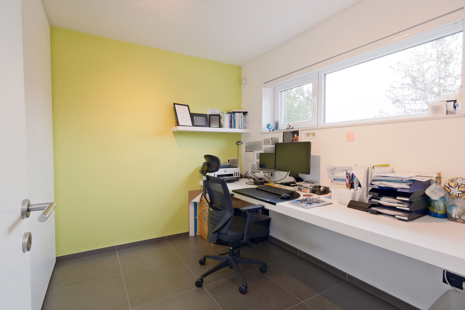 Aansluitend bevinden zich een gastentoilet en een afzonderlijke bureauruimte van 7,1 m² met ingebouwde kasten, ideaal voor thuiswerk of vrij beroep.