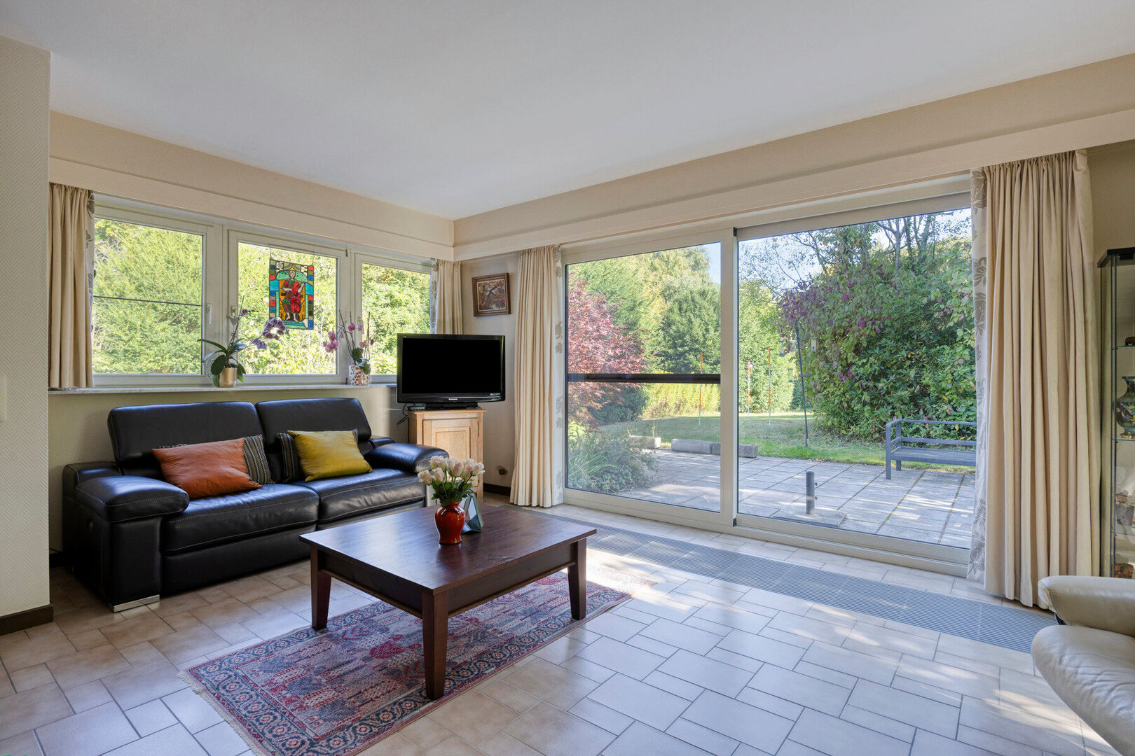 Lichtrijke woonkamer met aansluitende eetkamer